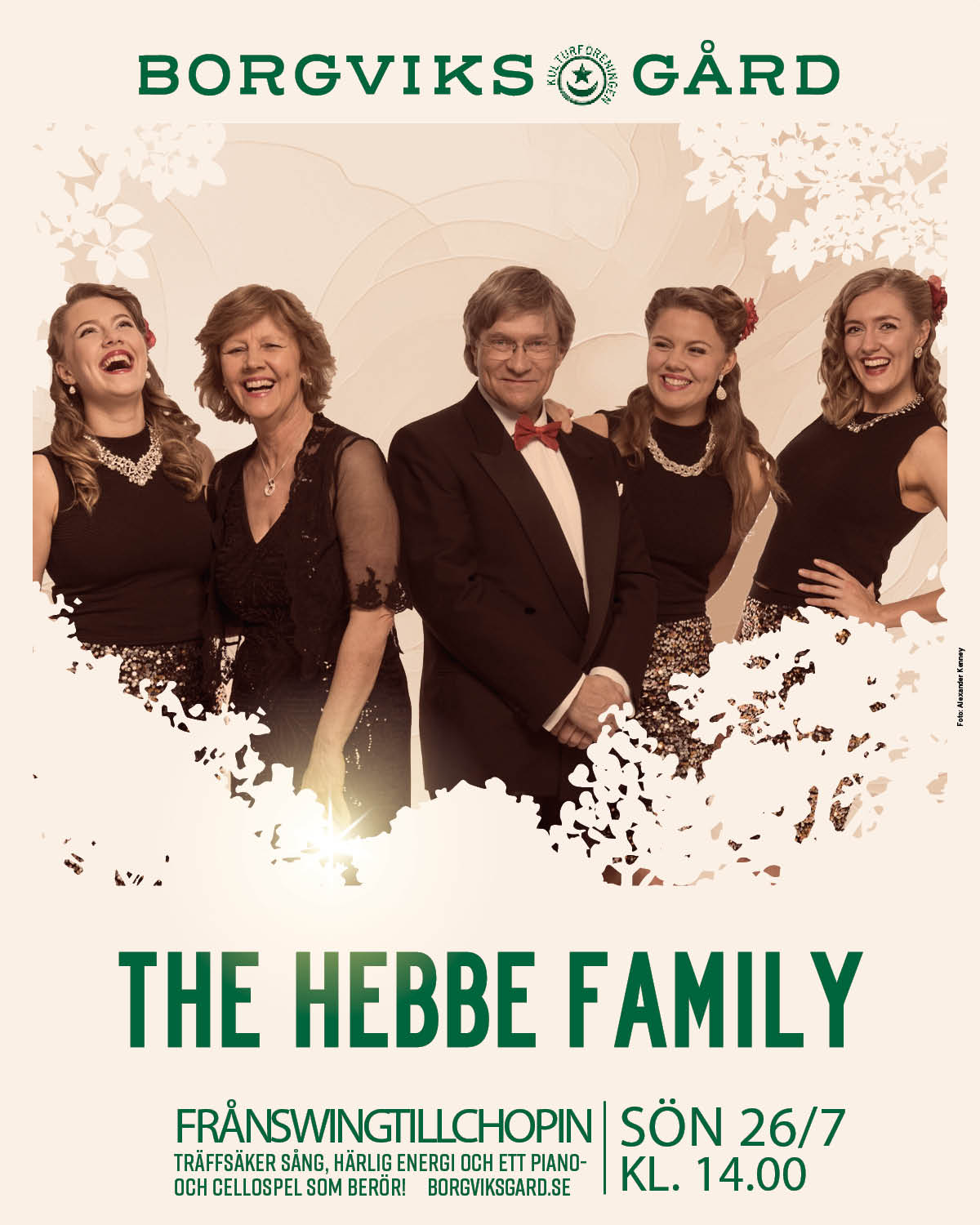 The Hebbe Family - Från swing till Chopin bjuder in till en förtrollande resa med allt ifrån glädjefull swing- och steppdans till klassiska pärlor av Chopin. Upplev glädje, eftertänksamhet och allt däremellan när du hör showiga medleyn, älskade operapärlor, stämsång i svensk folkton, varma cellotoner och virtuosa pianofingrar som får publiken att tappa andan.